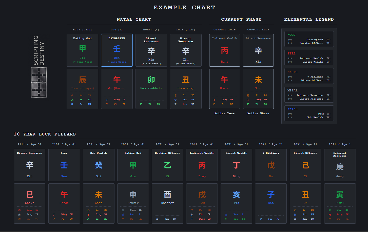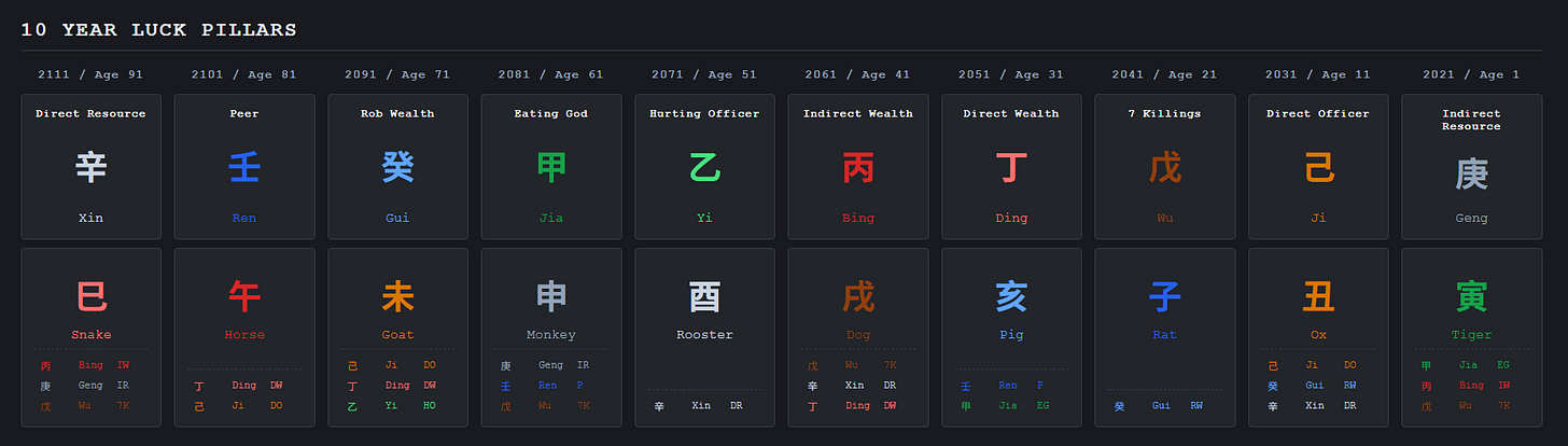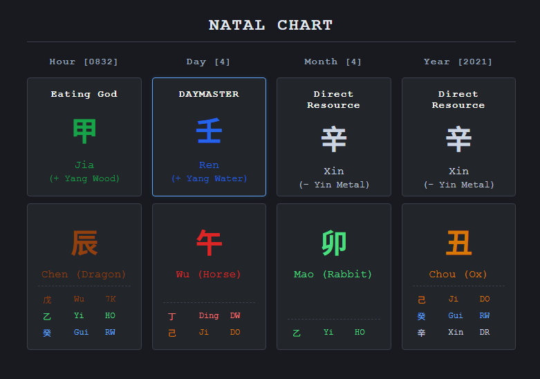 That’s what BaZi(八字)is. A Chinese Metaphysics system that generates a person’s “stat sheet” at birth.