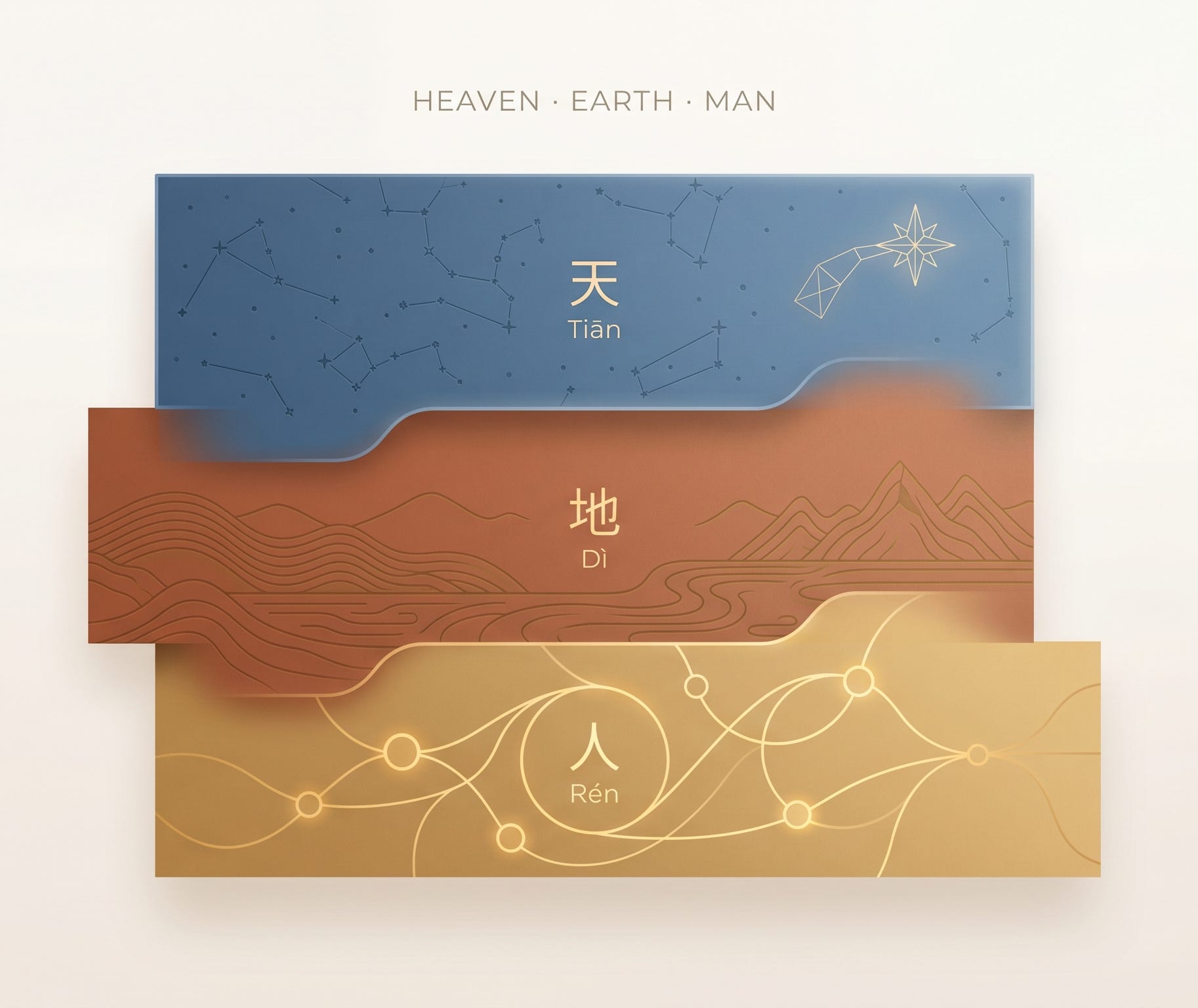 To understand how this works, we have to look at the classical architecture of human reality: the San Cai (三才), or the Cosmic Trinity.